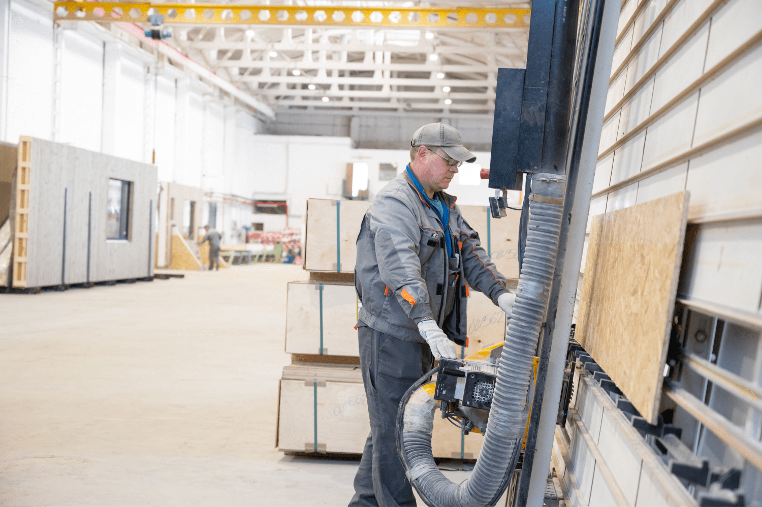 Листовой материал для обшивки каркаса стен готовится на форматно-раскроечном станке
