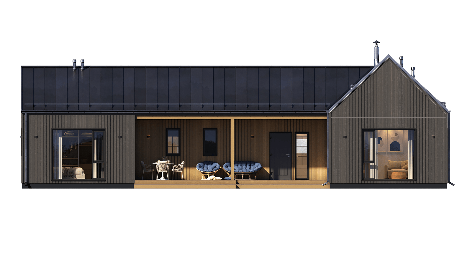 • Вход совмещен с террасой с фронтальной стороны дома
